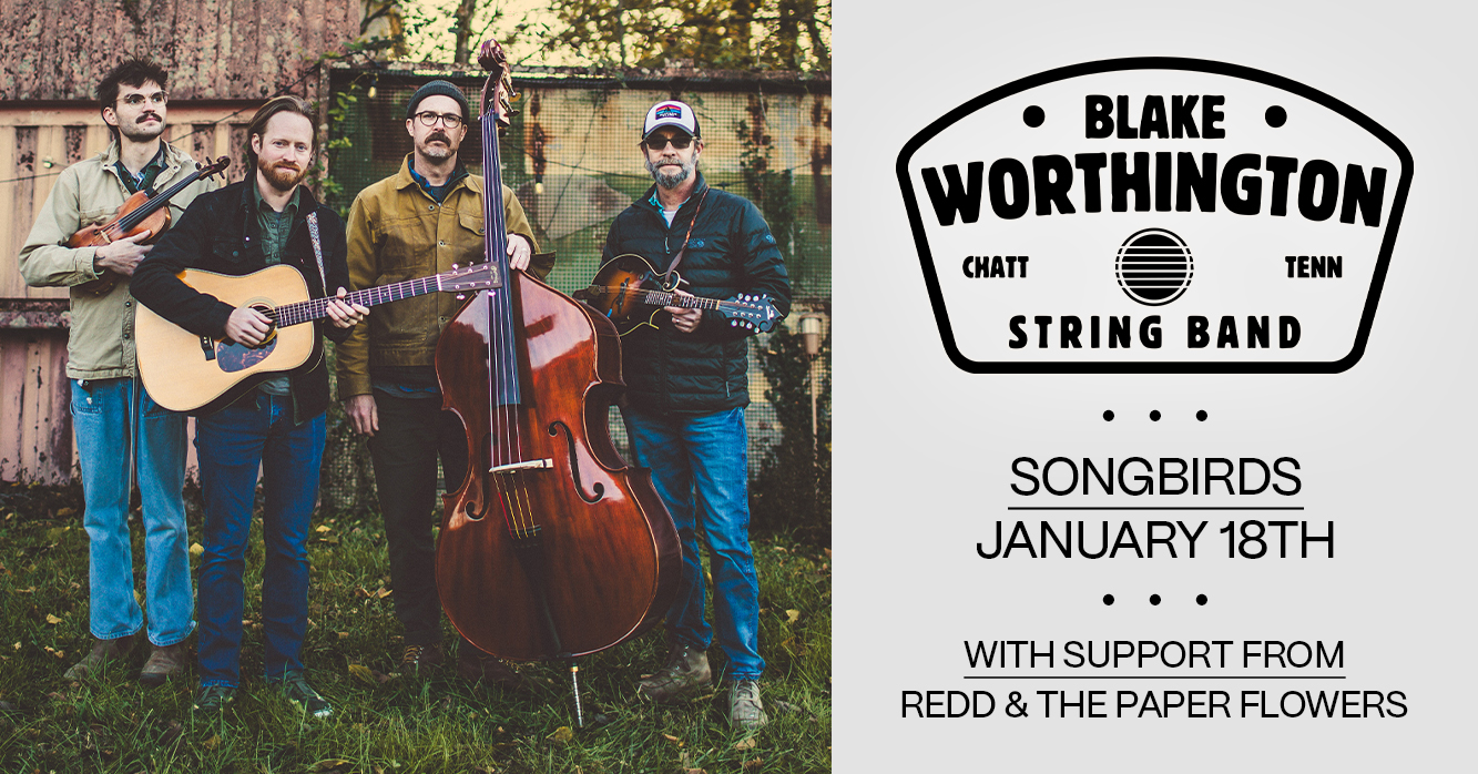 The Blake Worthington (STRING) Band is quickly becoming one of the most compelling forces in the Chattanooga music scene, delivering a sound that's acoustically electrifying as it is deeply rooted. They masterfully blend the rapid-fire precision of bluegrass, the storytelling of folk, & an undeniable groove. The result is a vibrant, high-energy experience built on meaningful & genuine song lyrics. |