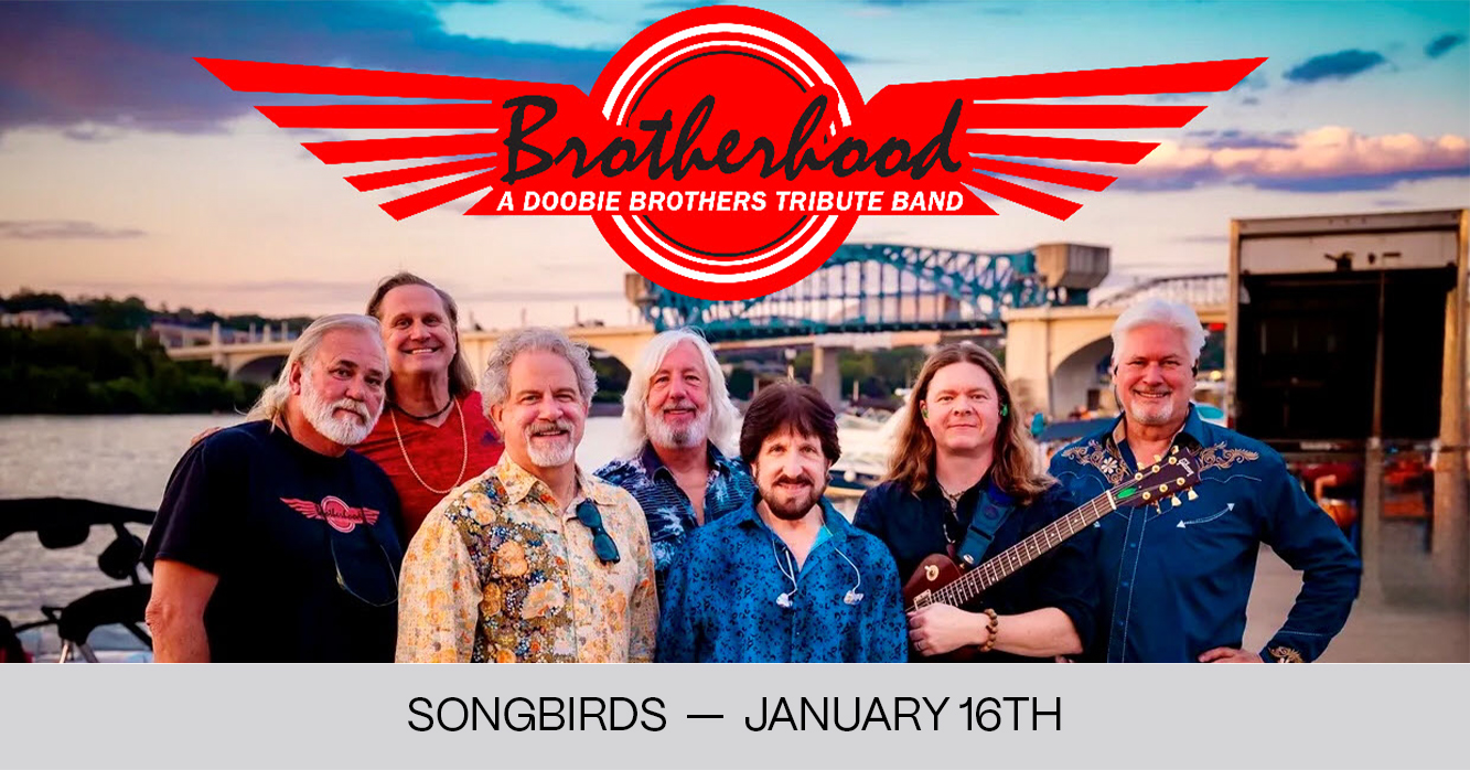 Brotherhood, a vibrant 7-piece Doobie Brothers Tribute band hailing from Atlanta, Georgia, has converged with a shared mission: to authentically recreate the electric atmosphere of a "Doobie Brothers" concert. Infused with a deep love for the band's music and a fusion of individual expertise, Brotherhood skillfully delivers all the iconic hits from the Doobies' illustrious 50-year career. |