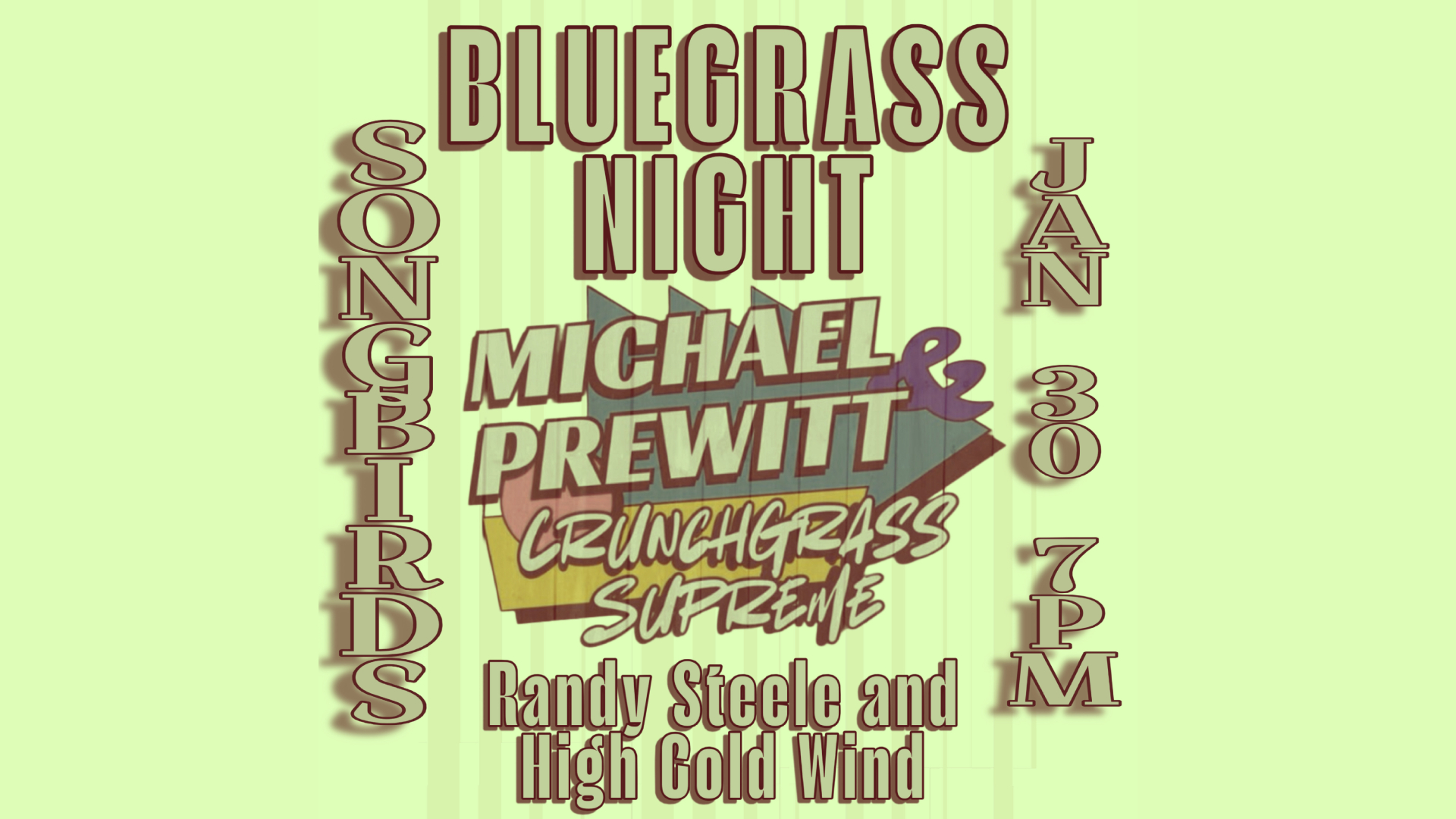 Get ready for a powerhouse night of bluegrass! Mandolin master and Kentucky troubadour Michael Prewitt & CrunchGrass Supreme brings his fiery picking, rich songwriting, and genre-bending jams with his full band in tow. Plus opening support from Chattanooga's own Randy Steele Music & High Cold Wind!