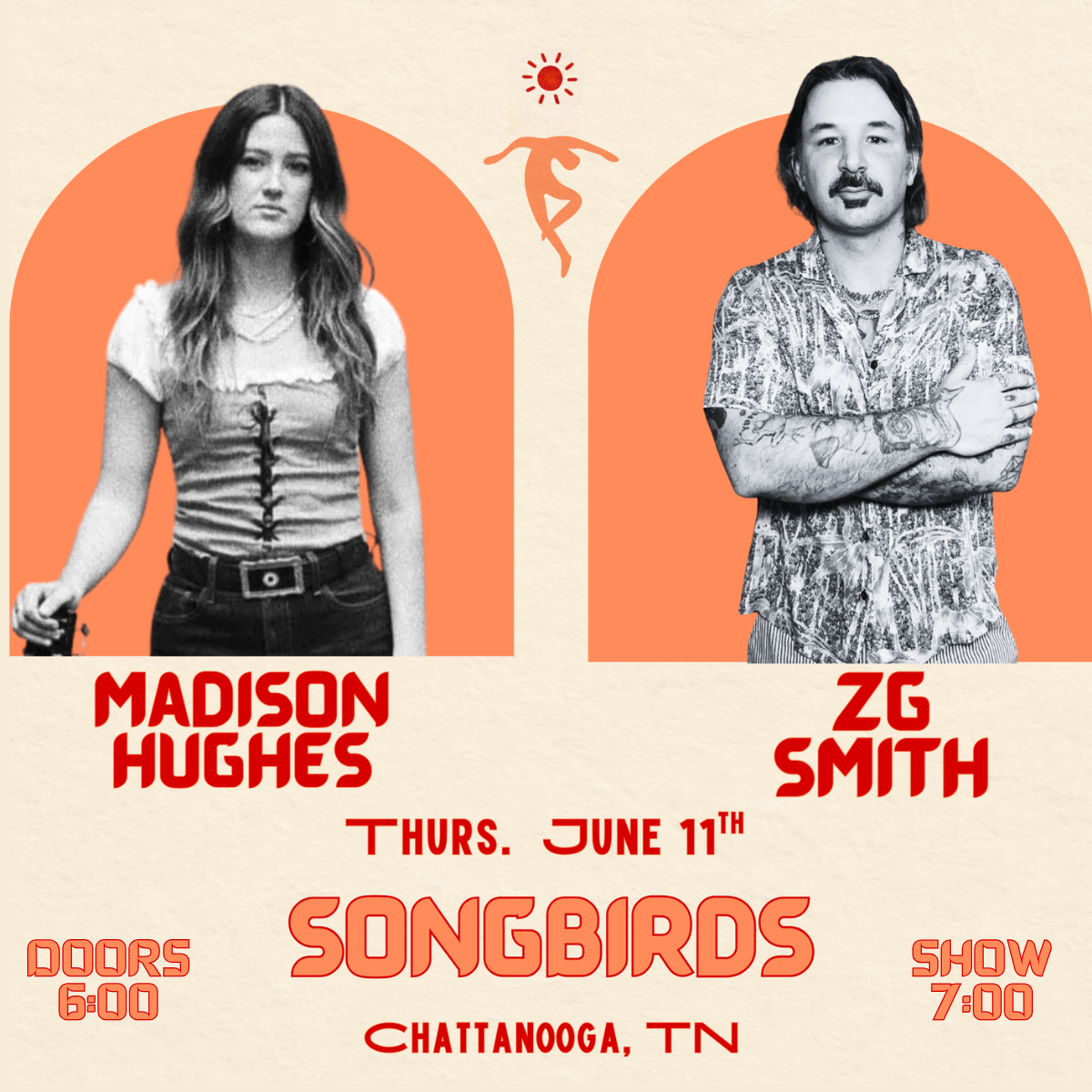 Since moving to Music City in his mid-twenties, ZG Smith has racked up a formidable cache of musical successes including touring extensively throughout the US, Canada, and Europe, being frontman, primary songwriter, and founding member of Americana duo Smooth Hound Smith. With countless releases on Spotify, Madison Hughes is sure to prove why she turned chairs on The Voice and was listed in Holler's “10 Country and Americana Artists You Need to Know."